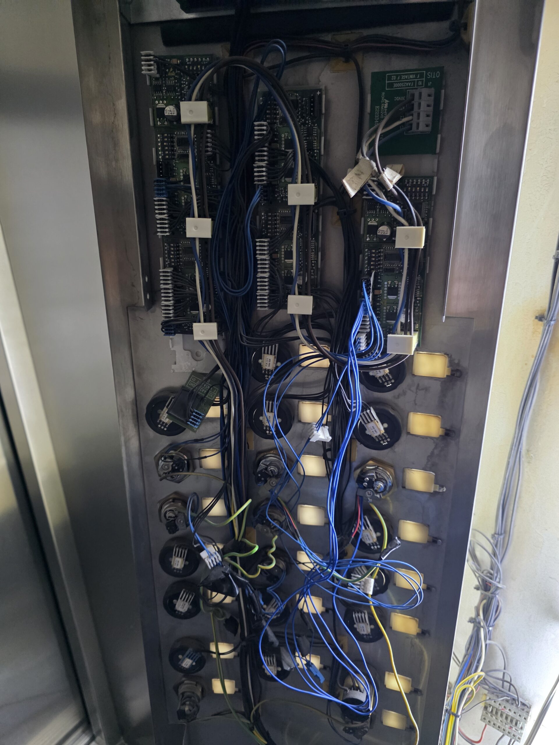 Previo al inicio de los trabajos programados para la intervención de la botonera del elevador principal de la Torre 1A, se realizó una inspección preliminar del equipo con el fin de verificar las condiciones actuales del sistema.